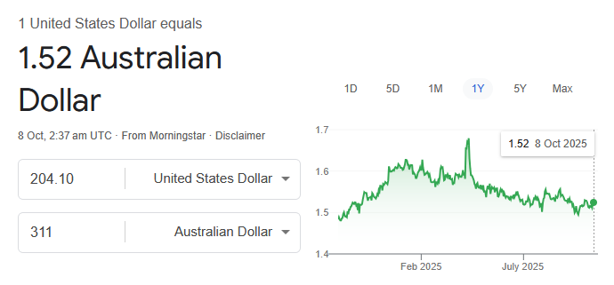 NOTE: The Aussie Dollar is Weak